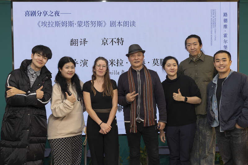 分享会上,6位演员带来《埃拉斯姆斯·蒙塔努斯》剧本第三、四幕朗读,展示了霍尔堡喜剧历久弥新的艺术生命力。